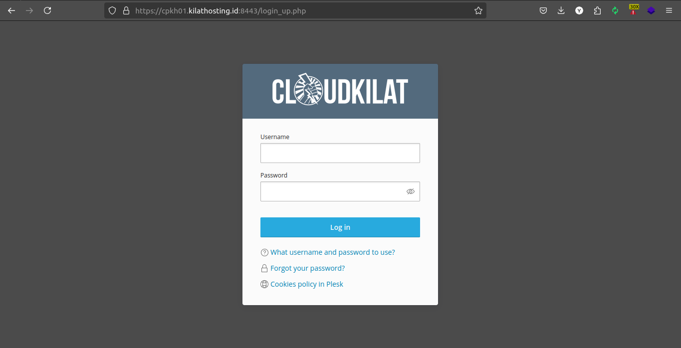 - Masuk ke halaman Kilat Hosting 2.0 Anda dan login sebagai pengguna.