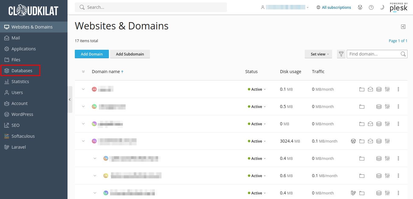 - Pada menu sebelah kiri, pilih Databases.
