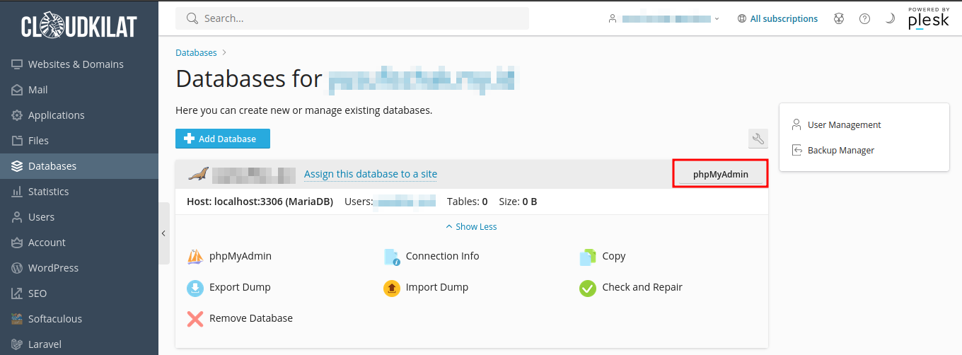 - Klik phpMyAdmin pada database yang ingin Anda import datanya.